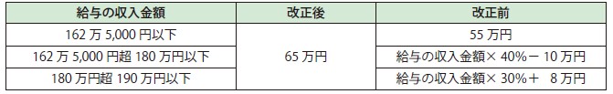 給与所得者に適用される給与所得控除について、令和8年度の個人住民税から、給与収入金額が190万円以下の人の最低保障控除額が65万円に引き上げられます。