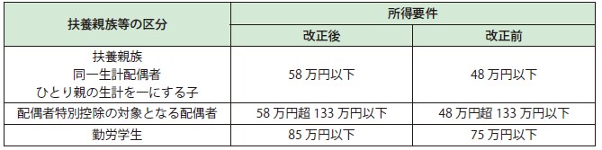 令和8年度の個人住民税から、各種扶養控除等の適用を受ける場合における所得要件額が10万円引き上げられます。