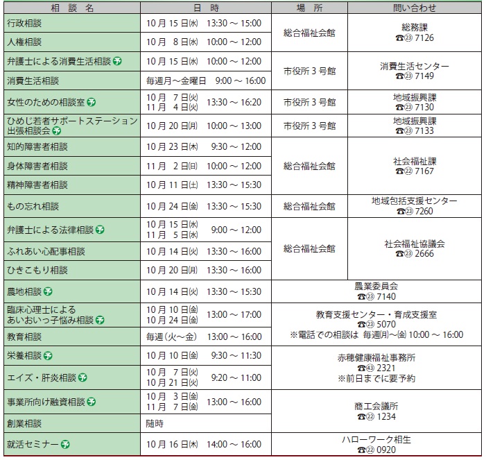くらし 相生市からの情報 Aioi city information ~総合情報「くらしの相談」 31/34 前の記事 次の記事 発行日 : 2025年10月01日 自治体名 : 兵庫県相生市 広報紙名 : 広報あいおい 令和7年(2025年)10月号 予:要予約 Tweet シェアする 乳幼児健診 まちのできごと AIOI Photo