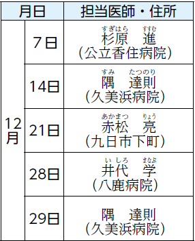 ■公立豊岡病院地域連携 小児休日救急診療日程