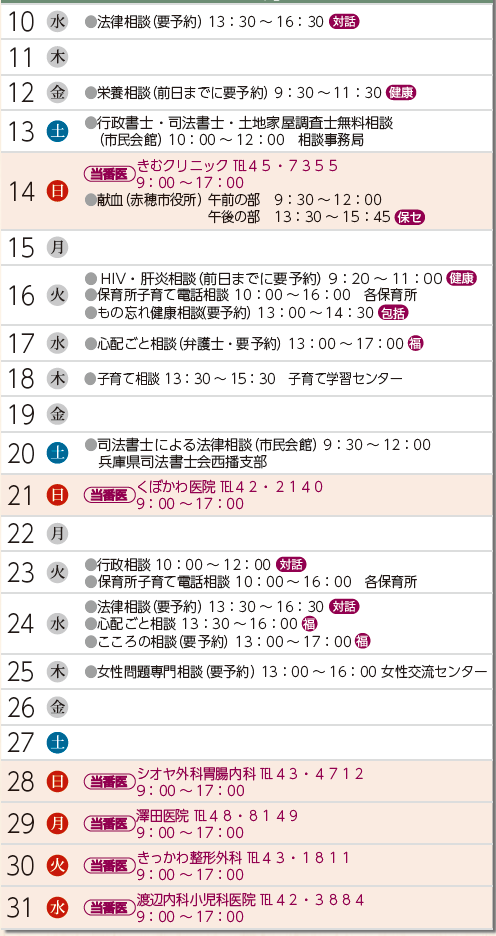 (健康)…赤穂健康福祉事務所【電話】43-2321