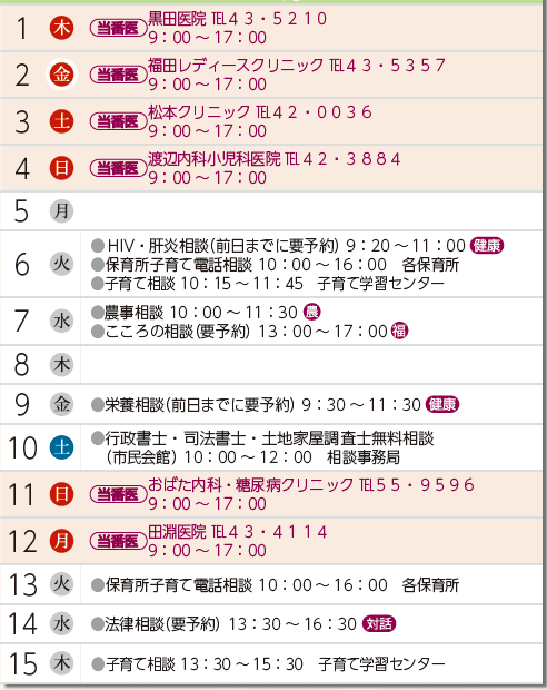 (保セ)…保健センター(すこやかセンター内)【電話】46-8701