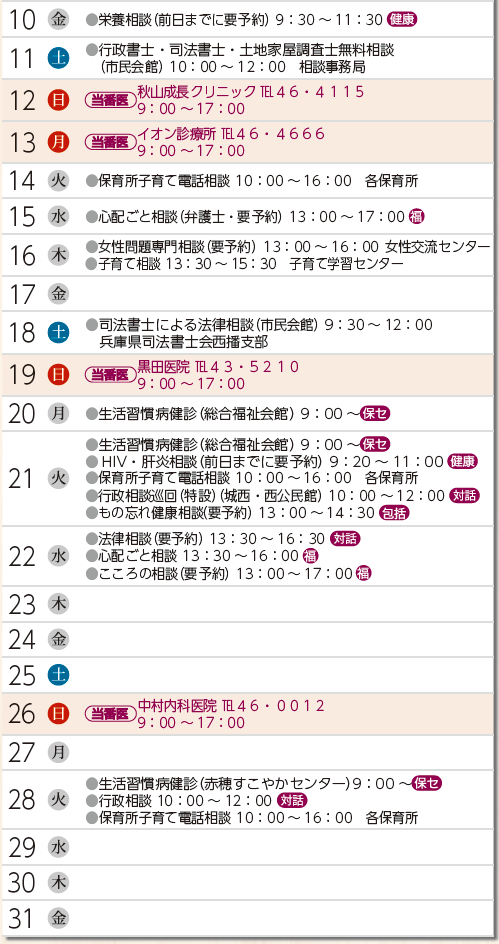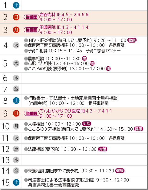 (健康)…赤穂健康福祉事務所【電話】43-2321
