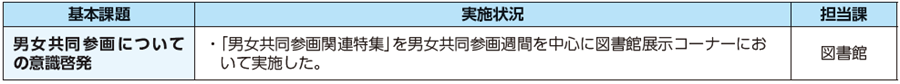 ・男女共同参画関連の情報発信について研究し、市民にしっかり届くよう工夫されたい。