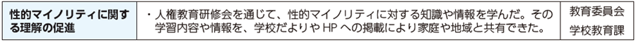 ・男女共同参画意識が浸透するためには、若い世代(高校生、大学生など)に向けての更なる啓発が必要不可欠である。