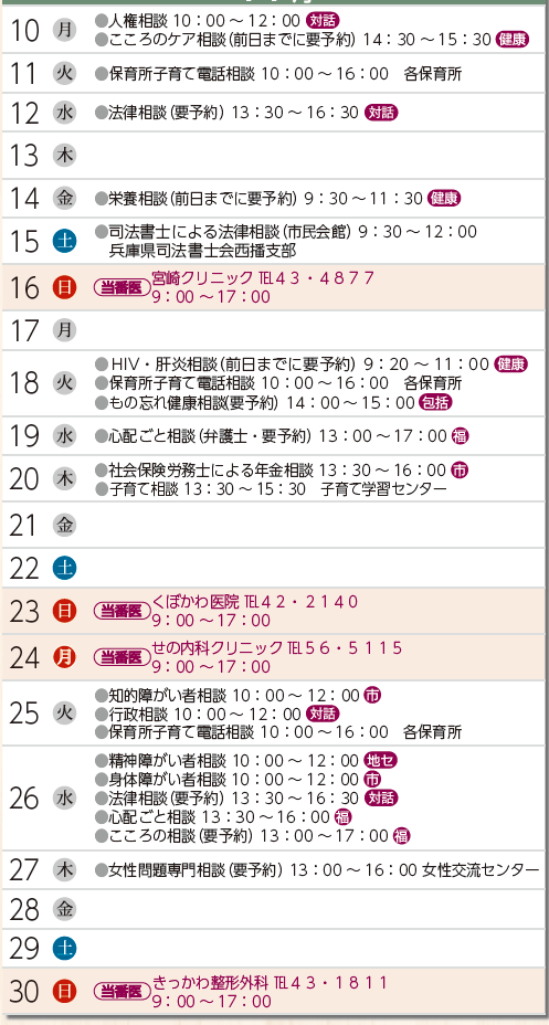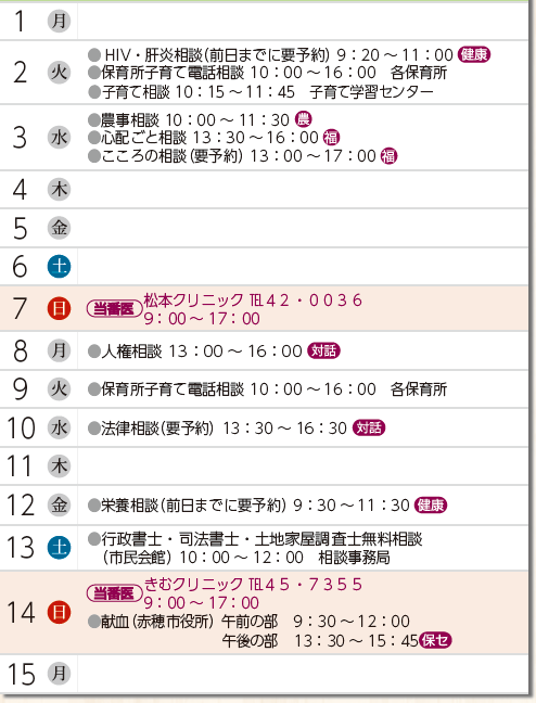 (健康)…赤穂健康福祉事務所【電話】43-2321