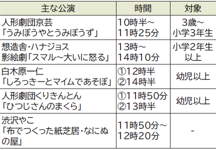 料金:ホール公演千円、その他会場の公演は一部有料