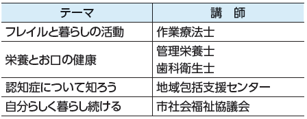 介護予防サポーターとは、介護予防や健康づくりに取り組む地域のボランティアです。介護が必要とならないようフレイル予防の知識や実践方法、地域での仲間づくりや生きがいづくりについて学び、各分野の専門家からヒントを得ましょう。
