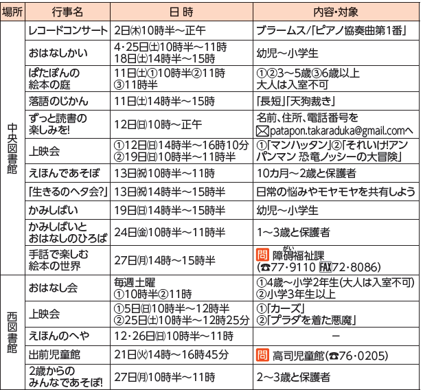(8日は定員(抽選)…120人、対象者…図書館の利用券を持つ人。抽選で付録の後日配布あり)