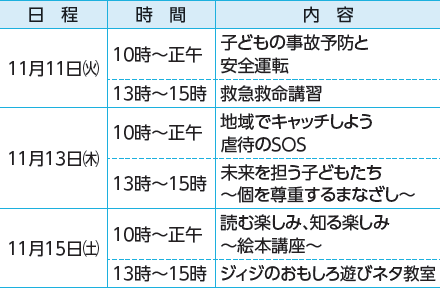 申込み・問合せ:11月4日(火)からファミリーサポートセンター
