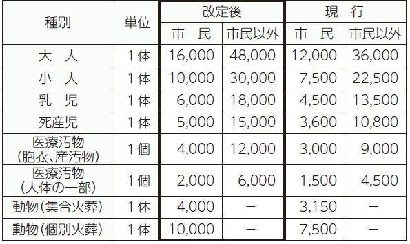 みきやま斎場について、供用開始から17年、令和元年10月の使用料見直しから6年経過したことに伴い、施設の持続的な管理・運営と受益者負担の適正化を図るため、次のとおり使用料の改定を行います。