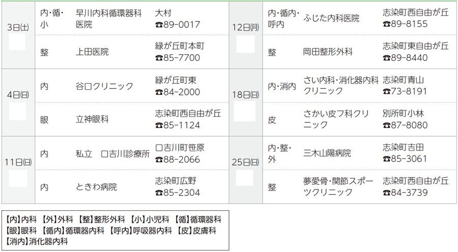 ・当番医および診療科目は変更になる場合があります。