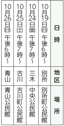 市政懇談会を次の日程で開催します。開催地区の住民は、傍聴することができます(傍聴者は発言できません)。