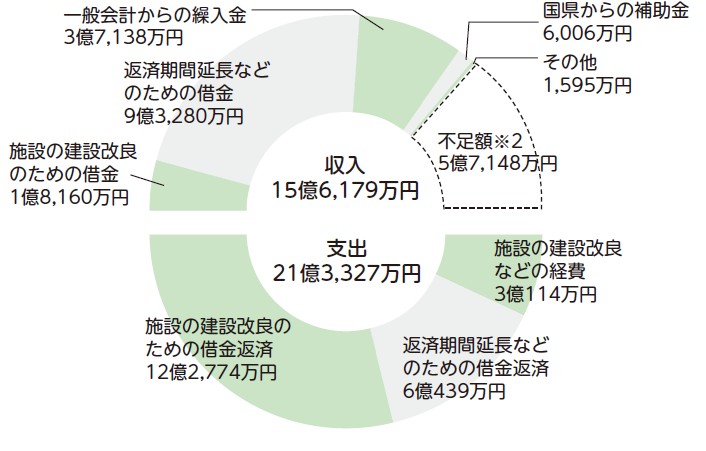 ※2…不足額は施設の減価償却費などの内部留保資金などで補てんしました