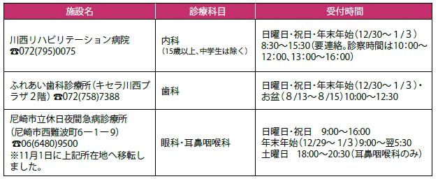 ■救急・休日診療(いずれも応急診療のみ)