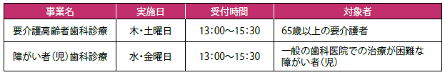 ■ふれあい歯科診療所での歯科診療など(予約は電話または窓口)