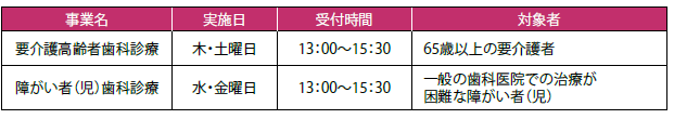 ■ふれあい歯科診療所での歯科診療など(予約は電話または窓口)