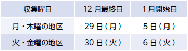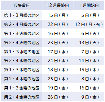 (!)年始の収集日変更地区変更のある地区のみ掲載しています。