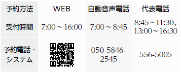 ※WEB・自動音声電話で診療予約がとれなかった場合は、代表電話をご利用ください。