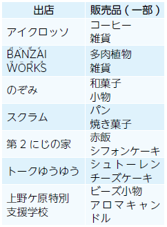 (2)物品販売…手作り雑貨、飲食物の販売