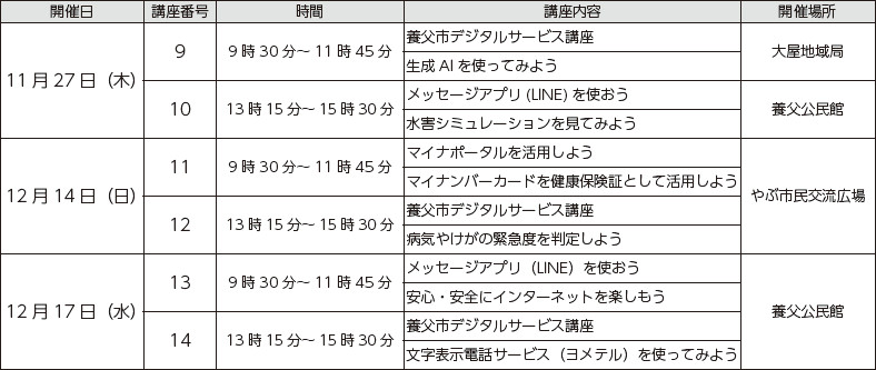 講座番号9・12・14…マイナンバーカードとやっぷるカード