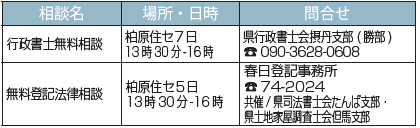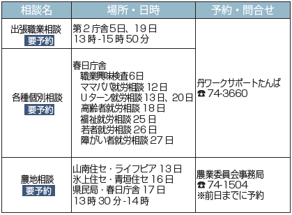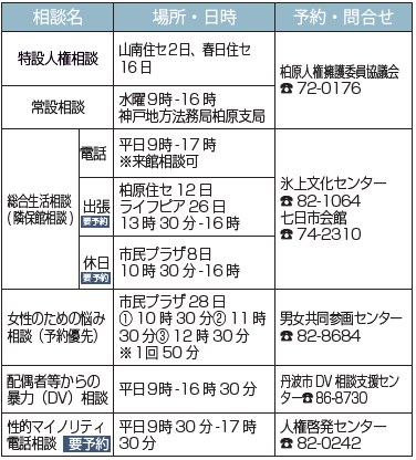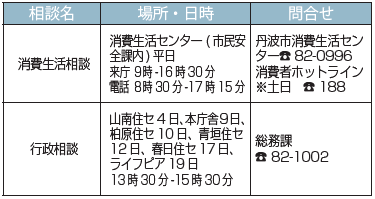 くらし 2月の各種相談窓口 6/45 前の記事 次の記事 発行日 : 2026年01月20日 自治体名 : 兵庫県丹波市 広報紙名 : 広報たんば 2026年1月号 ■消費・行政相談 ■人権相談 ■医療・健康・年金相談 ■福祉相談 ■市民活動・地域づくり相談 ■法律相談 ■空き家相談 ■雇用・農地相談 Tweet シェアする 市営住宅の入居者を募集 消費生活NEWS