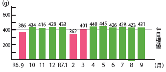 9月の1日あたりのごみ排出量:1人431g(8g)