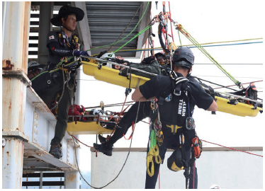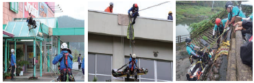 10月4、5日、ロープレスキューの技術向上を目指して、「Hyogo Advance Challenge」がはじめて丹波市で開催されました。消防隊員による10チームが県内外から参加し、旧山南中学校など市内4つの会場で、日ごろの訓練の成果を発揮しました。