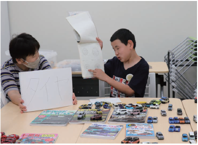 9月7日、市民プラザで「みんながセンセイ!みんなが生徒!たんばまなびのマルシェ2025」が開催され、12人のセンセイが自分の好きなことや得意なことを生かして授業を行いました。新井小6年生のそうちゃんセンセイ(小澤奏太(おざわそうた)くん、写真右)は、車の魅力をテーマに授業に挑戦し、「とても緊張したけど、自分が車のどんなところを好きかを伝えることができてよかった」と話していました。