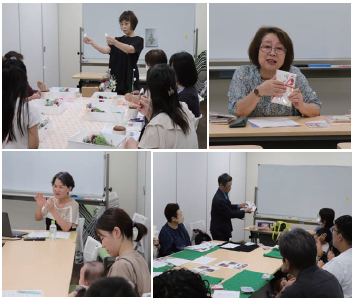 フラワーアレンジメント(左上)、金封紙の使い方(右上)、赤ちゃんとのコミュニケーション(左下)、カードマジック(右下)など、さまざまなジャンルのセンセイが授業を行いました。