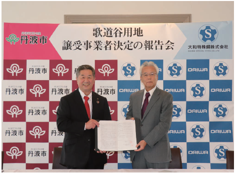 10月27日、たんば黎明館で、大和特殊鋼株式会社との歌道谷用地の譲受事業者決定の報告会が行われました。面積は35,109.77平方メートル。報告会で山本正廣(まさひろ)代表取締役は、「この土地をわが社の躍進の足掛かりにしたい。我々の企業活動が丹波市の地域活性化の一助になれば」と語っていました。
