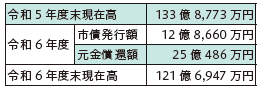 令和6年度末の市債残高は、通常の償還に加えて、3億5,068万円の繰上償還を実施したことにより、前年度末より12億1,826万円減少(9.1%)し、121億6,947万円となりました。このうち、約7割は後年度交付税により補てんされます。
