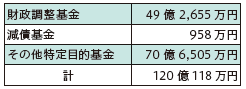 また、市の貯金ともいえる基金の残高は、昨年度末より2億1,298万円増加し、120億118万円となりました。