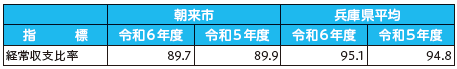 また、経常収支比率は高いほど財源に余裕がなく、低いほど市独自の事業を行う余裕があること示す指標ですが、令和6年度は89.7%と兵庫県平均95.1%より低くなっています。