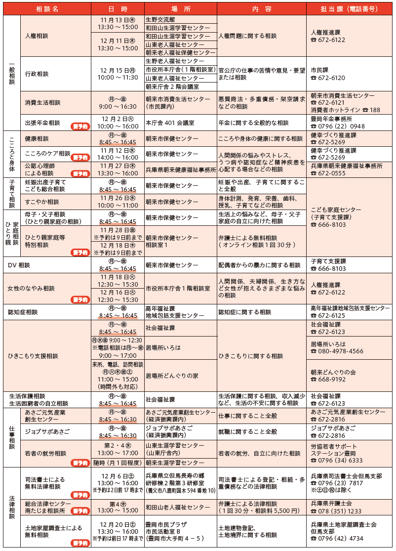 相談日が祝日・振替休日や年末年始のときは、実施しない場合があります。