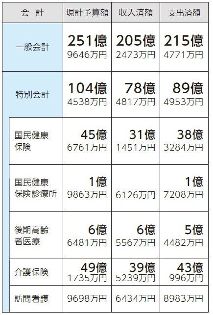 公共施設や道路などの整備にあてた借入金である地方債の残高は、一般会計で241億1241万円、特別会計(国民健康保険診療所)で2868万円です。