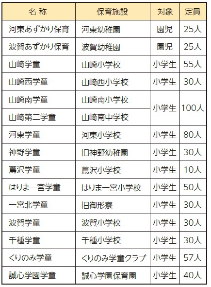 専用フォーム(本紙参照)から申し込む、または所定の申込書などをこども未来課、市民局管内の保健福祉課、各あずかり保育、学童のいずれかに提出。くりのみ・誠心学園学童のみ直接施設まで。