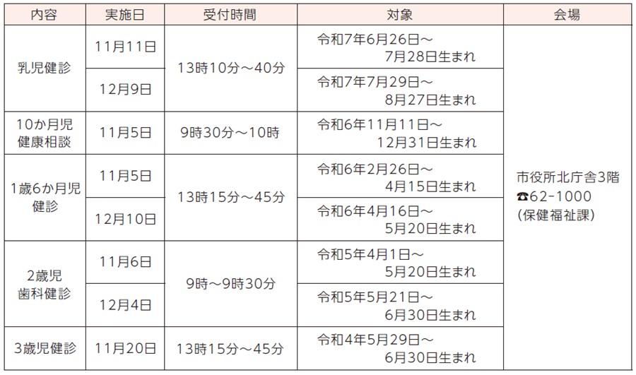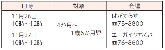 離乳食についての講話が聴けるほか、その相談などができます。赤ちゃんも参加できます。