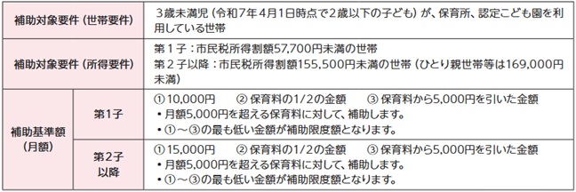 ※市民税所得割額が57,700円未満の世帯は、第1子の年齢や保育所等の施設利用の有無にかかわらず、第2子は半額、第3子以降は無償