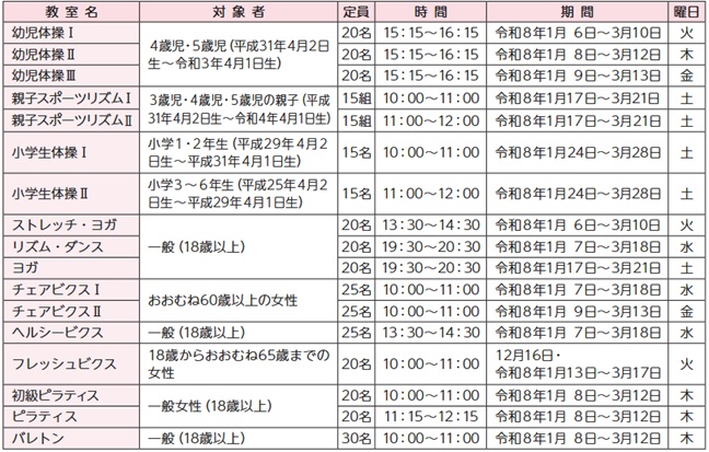 ※定員を超えた教室は、12月9日(火)の10時から事務局で抽選を行います。