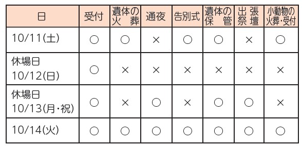 ■西脇多可広域斎場「やすらぎ苑」休場日