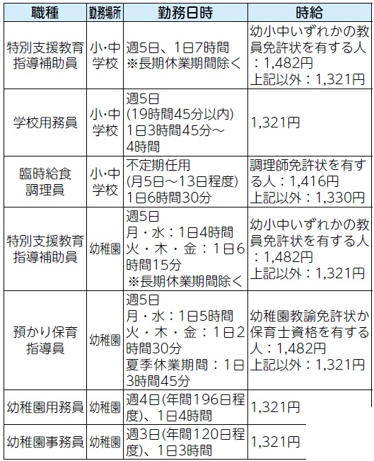 ※勤務情報などの詳細は、町ホームページか申込窓口に備え付けの募集要項をご覧ください。