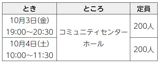 ・事前申込は不要です。ただし、会場の収容人数には限りがありますので、会場の定員数を超えると、ご参加いただけない場合があります。