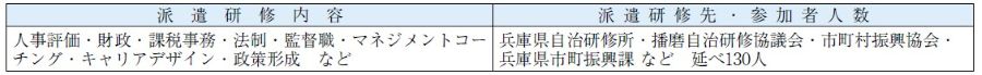 住民ニーズに的確に対応できる職員の人材育成を積極的に推し進めるため、経験年数や職責に応じた一般研修や職務に必要な専門的な研修に派遣しています。その他、庁内研修では財務、接遇、人権、交通安全、普通救命講習、コーチングなどの研修を実施しました。