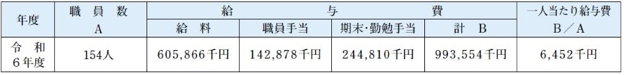 ※職員数については、特別会計の職員を除いた令和6年4月1日現在の人数です。また、再任用職員(短時間勤務)や会計年度任用職員を含みません。