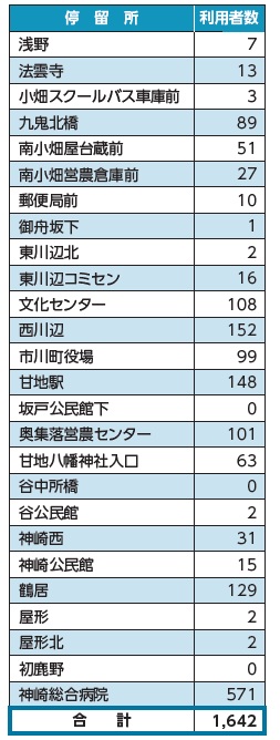 ◆令和6年度コミュニティバスの停留所ごとの利用者数