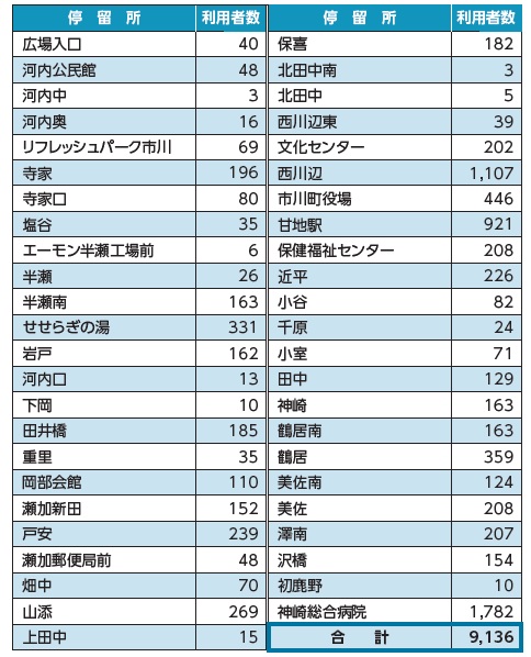 公共バスの運行を継続していくためには、多くの皆さんに利用していただくことが大切ですが、利用者が少ない停留所も一部存在しており、今後運行内容を見直す可能性もあります。