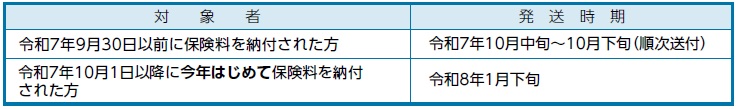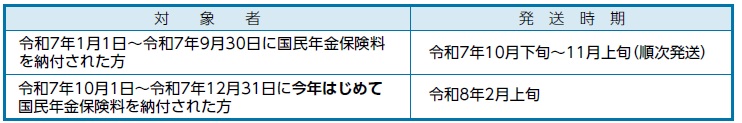 「社会保険料(国民年金保険料)控除証明書」は、日本年金機構から以下のスケジュールで郵送されます。