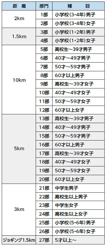 ※ジョキングの部に出場する幼児は、保護者の伴走が必要です。その際は別々でお申し込みください。なお、着順判定及びタイム計測は行いません。