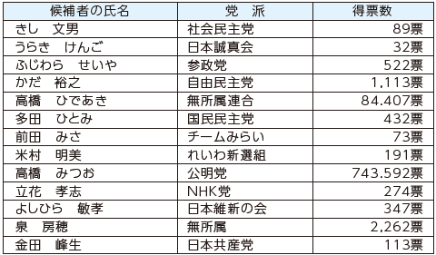 ■参議院兵庫県選挙区選出議員選挙の候補者別得票数(届出順・通称名)(敬称略)